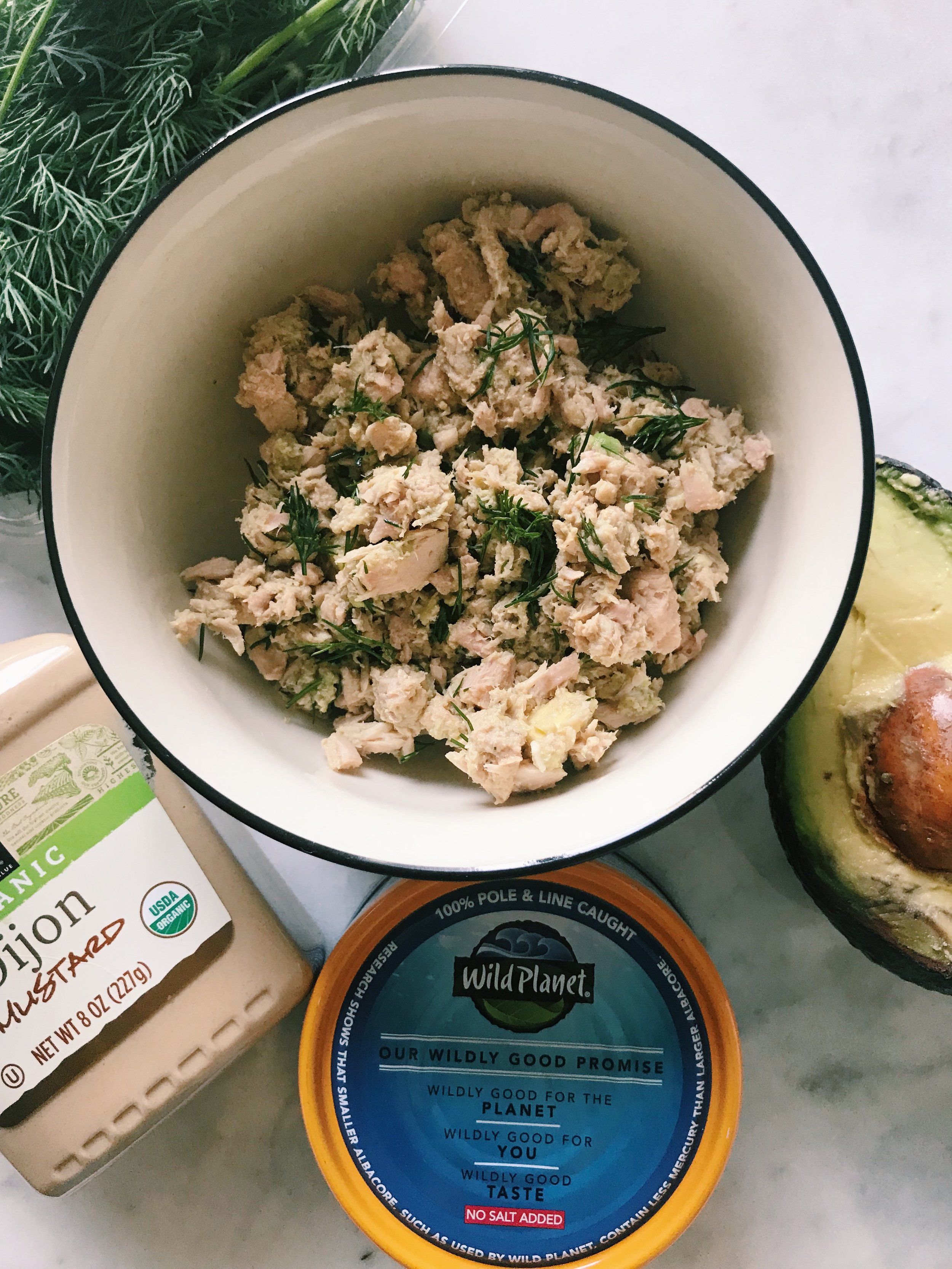 It’s no secret that tuna is a polarizing food. Either you love it (hello me!) or you can’t even stand being in the same room as someone eating it. As I am part of the former group, I am always trying to come up with recipes to make at home with it. The truth is, while tuna itself can be a great healthy protein source, most tuna salads you buy in stores are filled with canola oil based mayo (note to self: write a post on different oils). Instead, this version gets creamy from avocado and extra flavor from the mustard and dill.