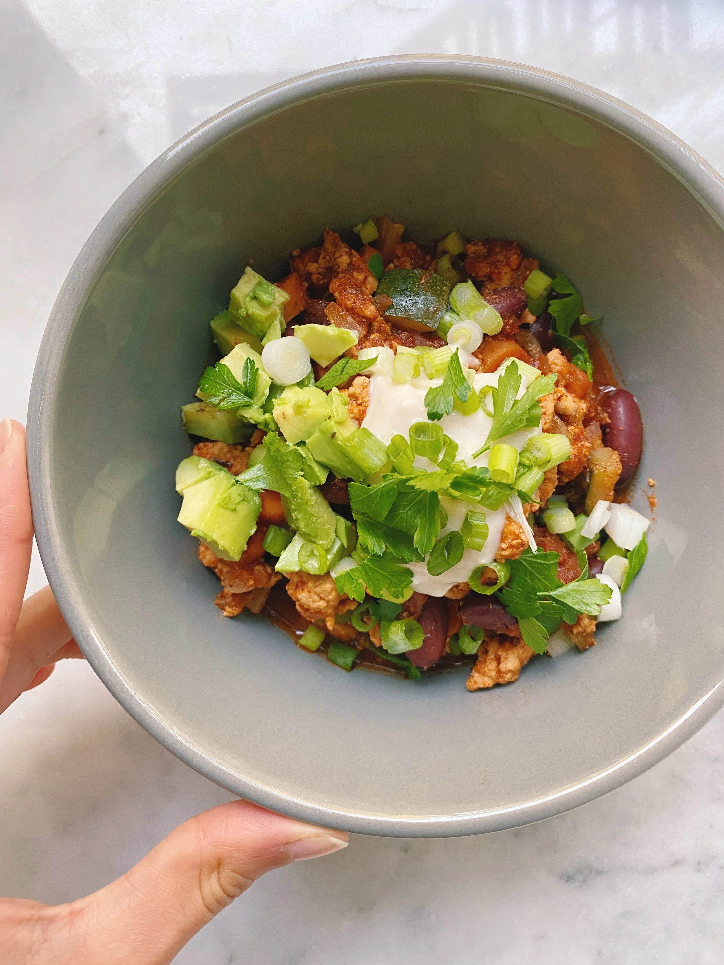 Once the chili has been simmering, add in the kidney beans (you don’t want to add too early because they can get mushy) and let heat for 1-2 minutes.